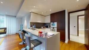 Presenting a luxury top-floor flat for sale in Chelsea Harbour. The property is situated on Waterfront Drive and comprises 4 bedrooms, 3 bathrooms and 1 WC. This modern and spacious property covers 1,780 sq ft of living space and is situated on the fourth floor.